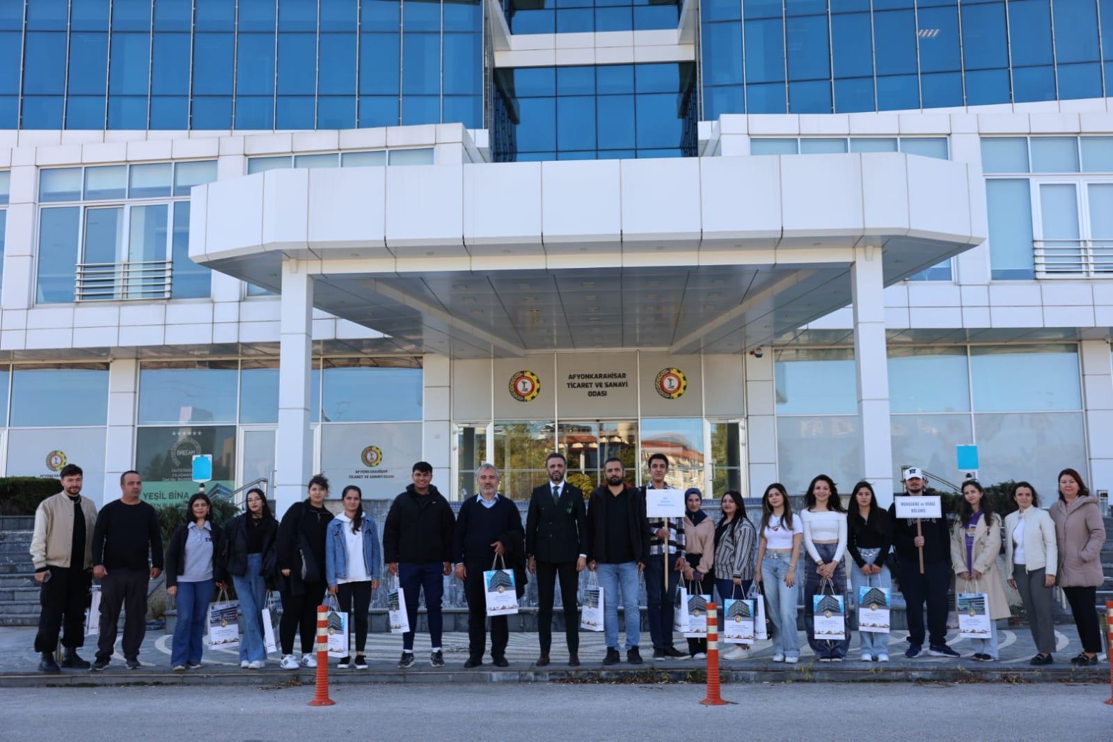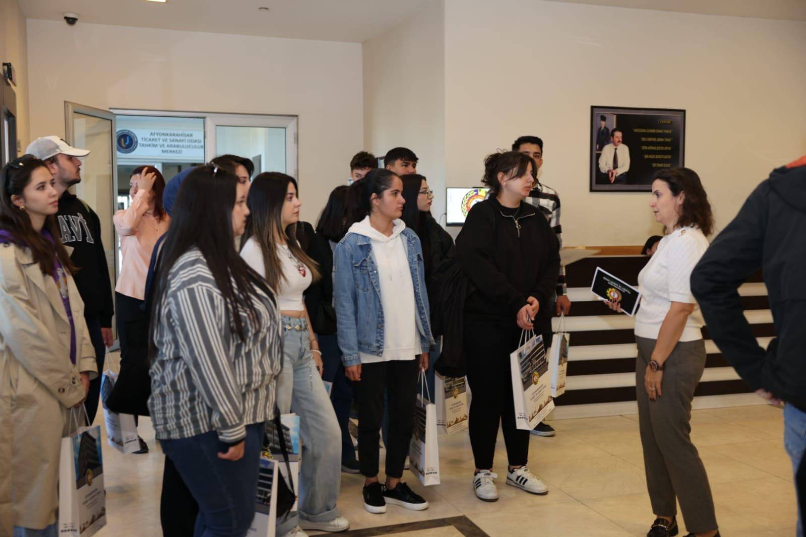 Ziyaret kapsamında ATSO Genel Sekreteri Ali Şenol, Yeşil Salon’da öğrencilere bir sunum yaptı. Ali Şenol, sunumunda Afyonkarahisar’ın ekonomik yapısı, öne çıkan sektörleri ve yatırım potansiyeli hakkında bilgi verdi. Ayrıca, öğrenciler ATSO’nun birimlerini ziyaret ederek birimlerin işleyişi ve yürütülen çalışmalar hakkında bilgi aldı.