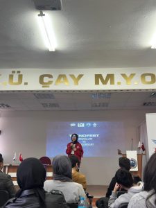 26.11.2025 çarşamba günü Afyon Kocatepe Üniversitesi Teknoloji Yarışmaları Koordinatörlüğü tarafından Çay MYO Konferans Salonunda öğrencilerimize Teknofest 2026 hakkında toplantı düzenlenmiştir. Toplantı da Değerli Müdürümüz Doç.Dr. Mustafa YALÇIN aynı zamanda Türkiye Teknoloji Takımı Vakfı Afyonkarahisar İl Sorumlusu ve AKÜ Teknofest Topluluğu Danışmanı olarak olarak açılış konuşmasını yapmıştır. Etkinliğin temel amacının teknoloji ve inovasyona ilgi duyan öğrencilerimizi bir araya getirerek onları TEKNOFEST 2026 yarışmaları hakkında bilgilendirmek ve yarışma süreçlerine ilişkin yol gösterici bilgiler sunmak olduğunu belirtmiştir. Daha sonra Afyon Kocatepe Üniversitesi TYK Koordinatör Yrd. Arş. Gör. İbrahim ÇELİK tarafından üniversitemizin TEKNOFEST faaliyetlerinde geçmişi, bugünü ve geleceği hakkında İnsansız Hava Araçları (İHA), Elektrikli Araç Yarışları, Uçan Araba ve Sosyal İnovasyon, Kocatepe Roket takımını, Zafer Takımının başarıları konularında bilgiler sunmuştur. AKÜ Teknofest Topluluğu Başkanı Rumeysa DOĞAN tarafından, TEKNOFEST yarışma kategorilerine dair detaylı bilgiler paylaşılmış ve katılımcıların projelerinde başarı elde etmelerine yönelik çeşitli önerilerde bulunmuştur.